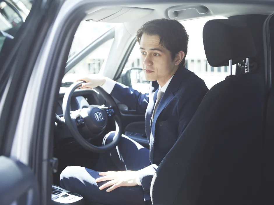 車の運転って、ジャケットが張るから、結構大変なんだけど、4Sに出会ってからは別。可動域があって、シワにもなりにくいから、僕みたいな不動産営業にはとくに人気なんだって。