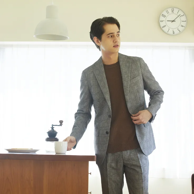 きちんとウール見えしながら、繊細でクラシックなチェック柄を再現。「デジタルクラシック」って言うんだって。スーツ好きの心をくすぐってくれる、これも4Sスーツの好きなところ。