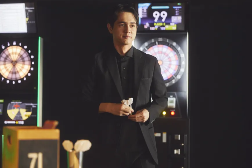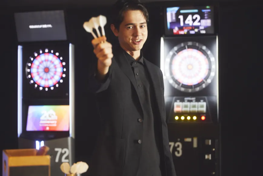 会社帰りに仲間とダーツ。ノータイで、ブラックでまとめたワントーンコーデにしてみた。もちろん4S。ストレッチがめちゃくちゃ効いているから、腕まわりも、得点も伸びる一方。
