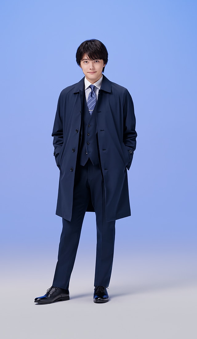 縦横に伸びる2WAYストレッチなので、外でも着疲れせずストレスフリーに。スーツに合わせてコートもストレッチのものを。