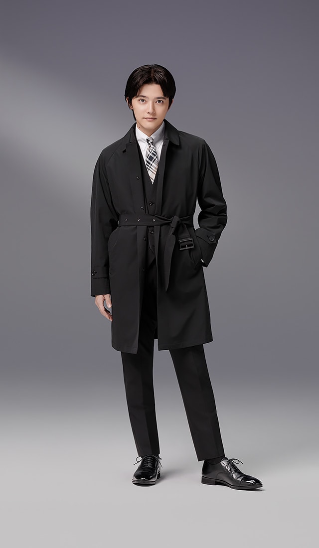 ベルトを締めて着るとよりクラシックな着こなしになり、
