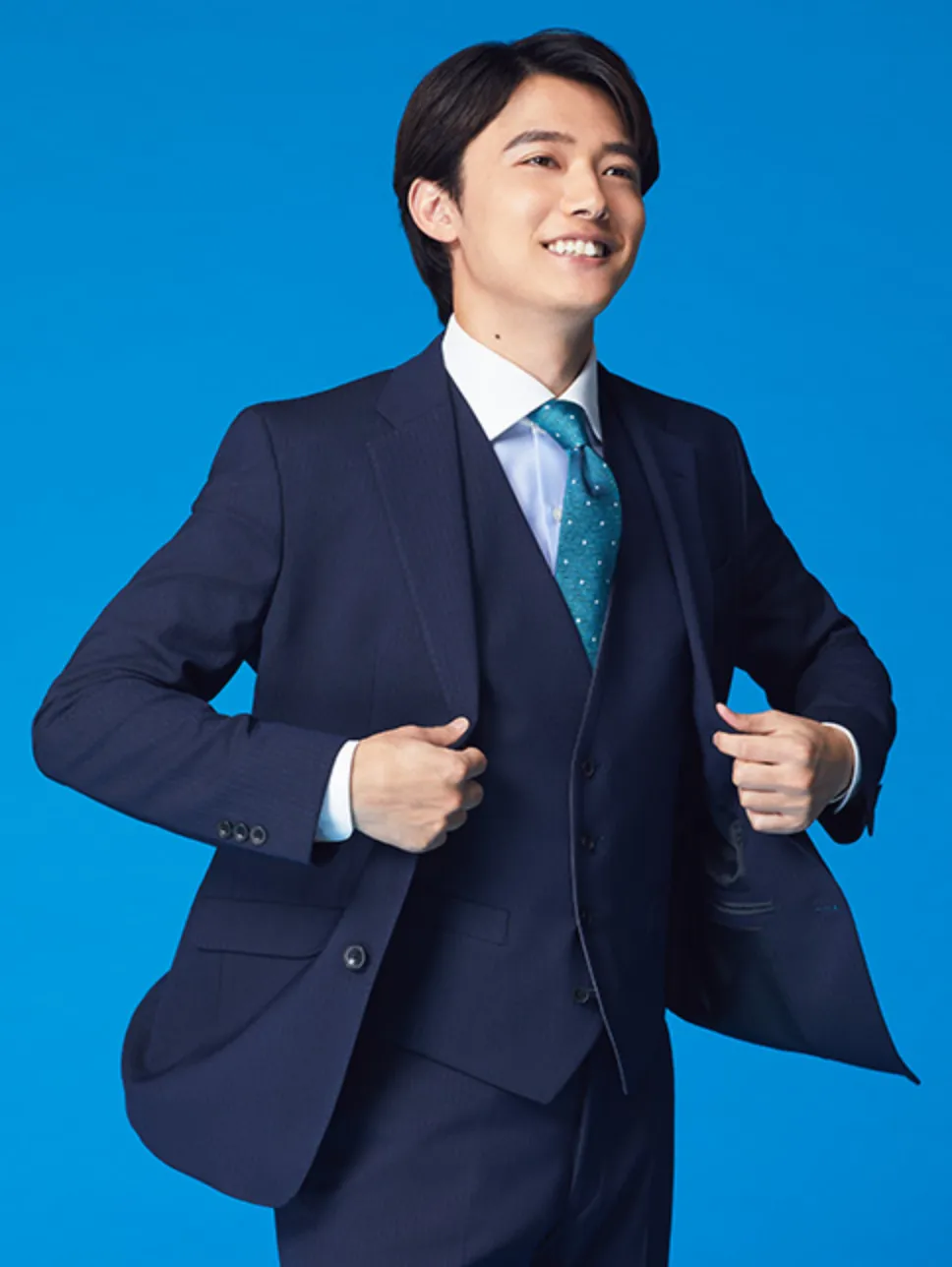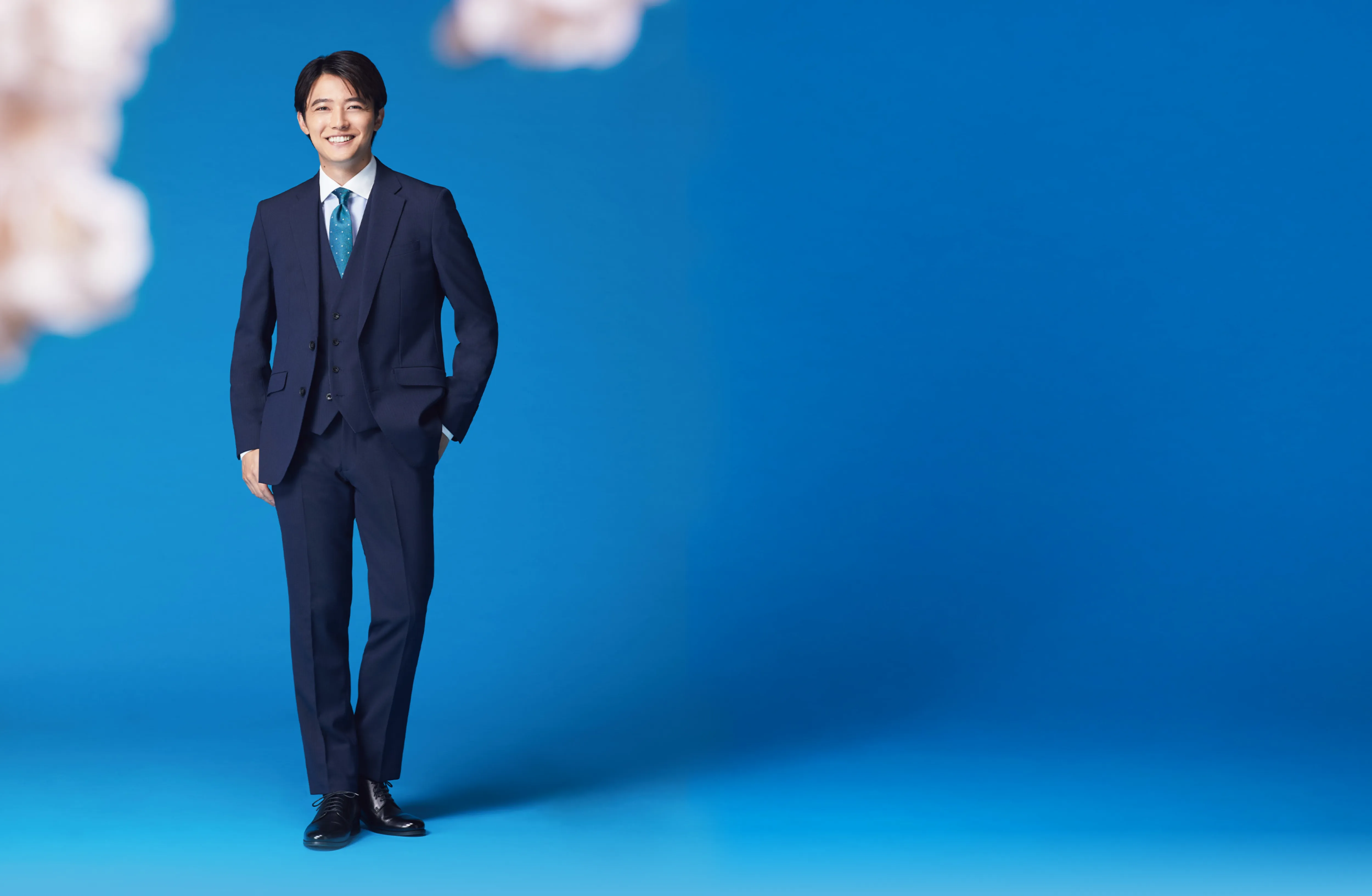 爽やかなネイビースーツは、清潔さを意識しながらも、親近感のあるカラーでまとめていくのが◎