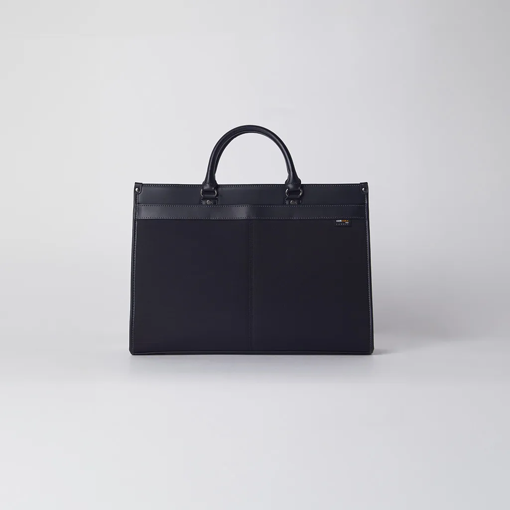 スーツスタイルの定番、黒のブリーフケース。耐久性や防水などに優れ、PC収納や小分けポケットなどの機能面も充実。