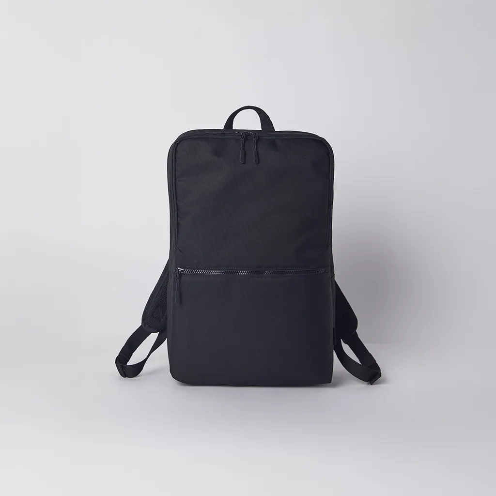 最近では新定番のバックパックもおすすめ。落ち着いたブラックでスーツを選ばないのも嬉しい。もちろん収納面も安心。