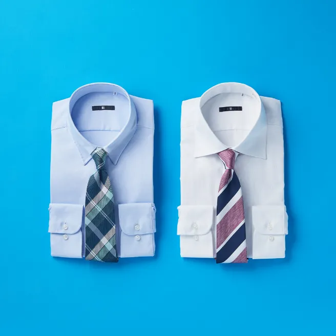 シャツの襟型やネクタイの柄やカラーで、さまざまな印象を楽しんでみてください。