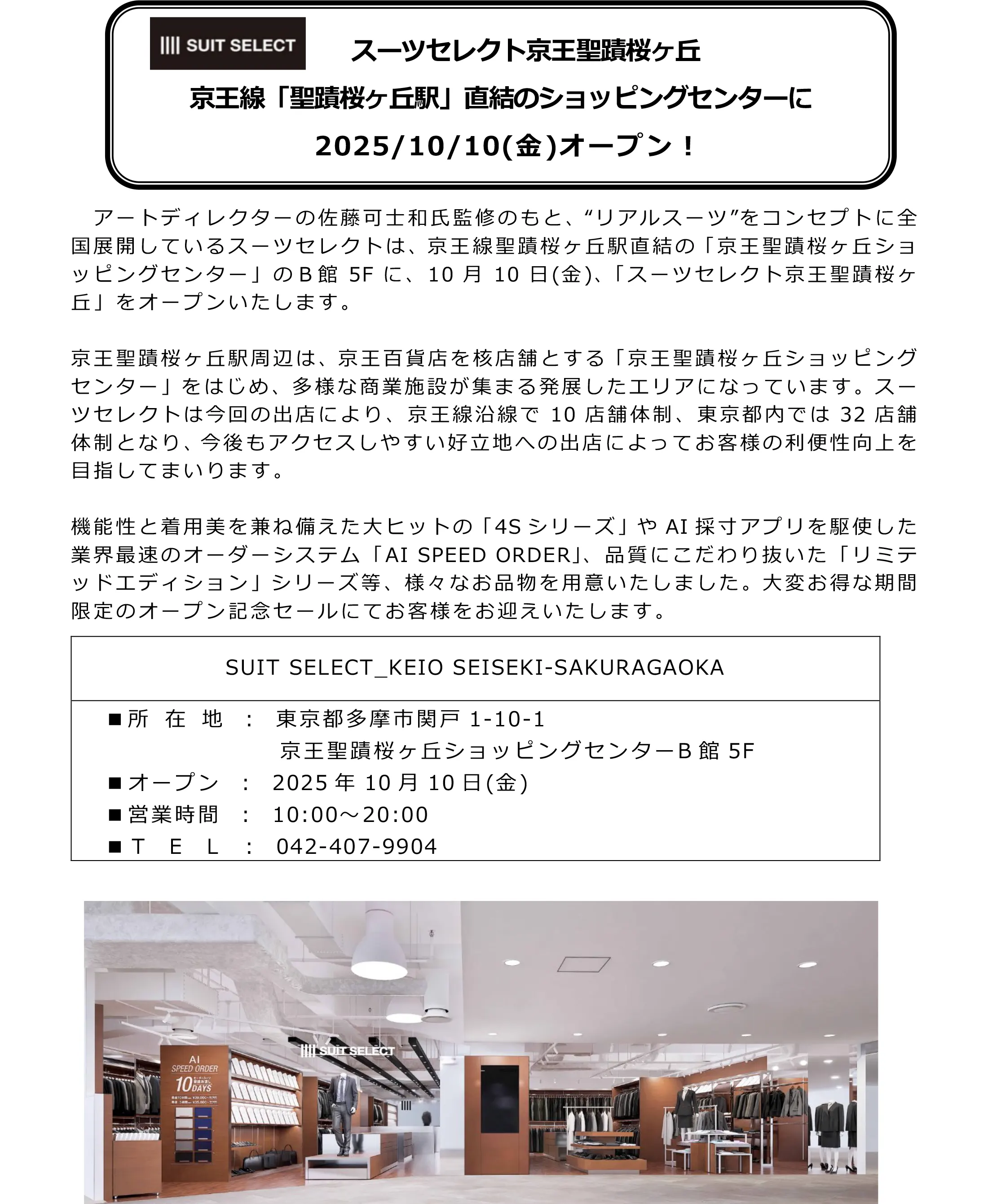 【 京王聖蹟桜ヶ丘オープンのお知らせ 】