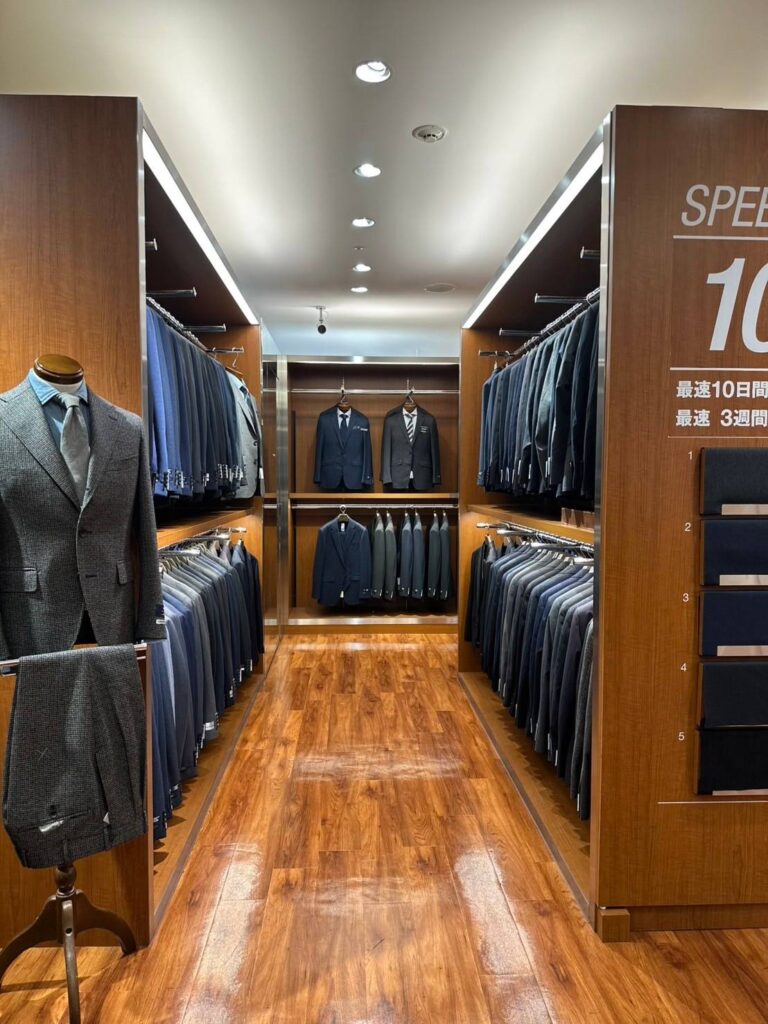 さらに、AIスピードオーダースーツも大変ご好評をいただいております。快適な空間でのオーダー体験を、ぜひお試しください。