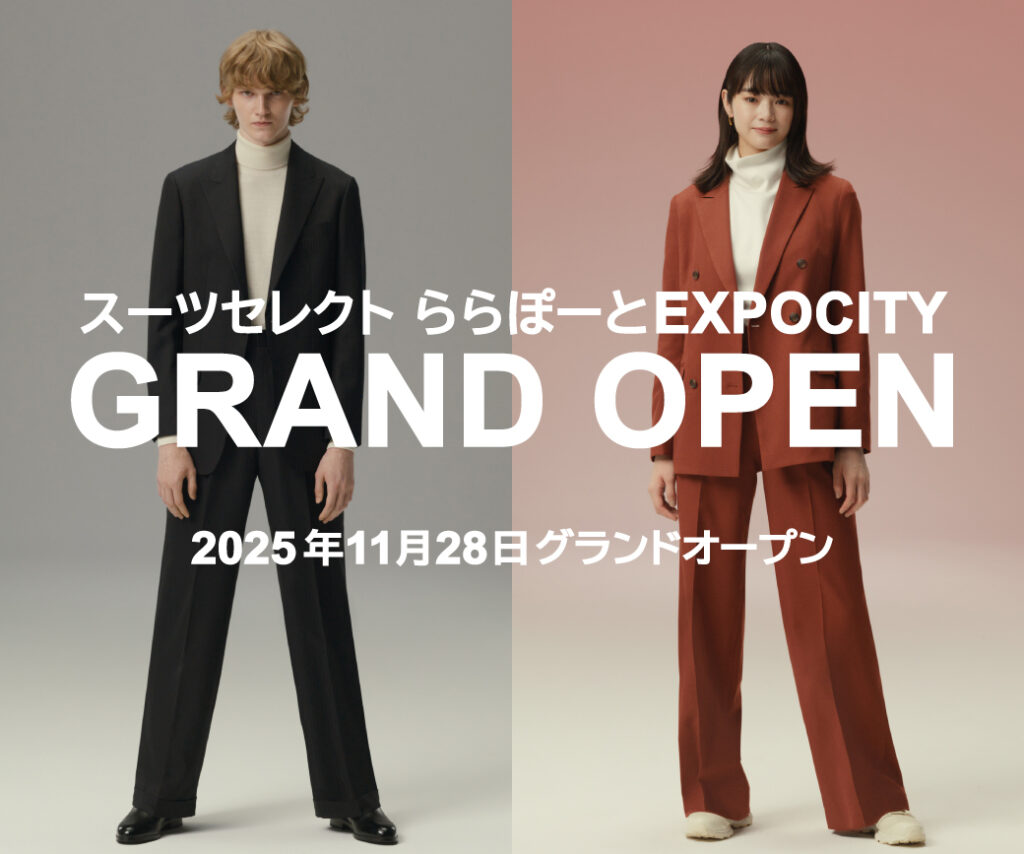 アートディレクター佐藤可士和氏監修のもと、リアルスーツをコンセプトに全国展開しているスーツセレクトは、日本最大級の大型複合施設“ららぽーと EXPOCITY(エキスポシティ)”の3Fに2025年11月28日(金)『スーツセレクトららぽーとEXPOCITY(エキスポシティ)』をオープンいたします。
