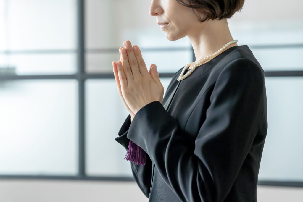 喪服としてパンツスーツを着用すること自体はマナー的にも問題ありませんが、故人や遺族に対して失礼のないよう、節度ある着こなしや振る舞いを心がけることが大切です。