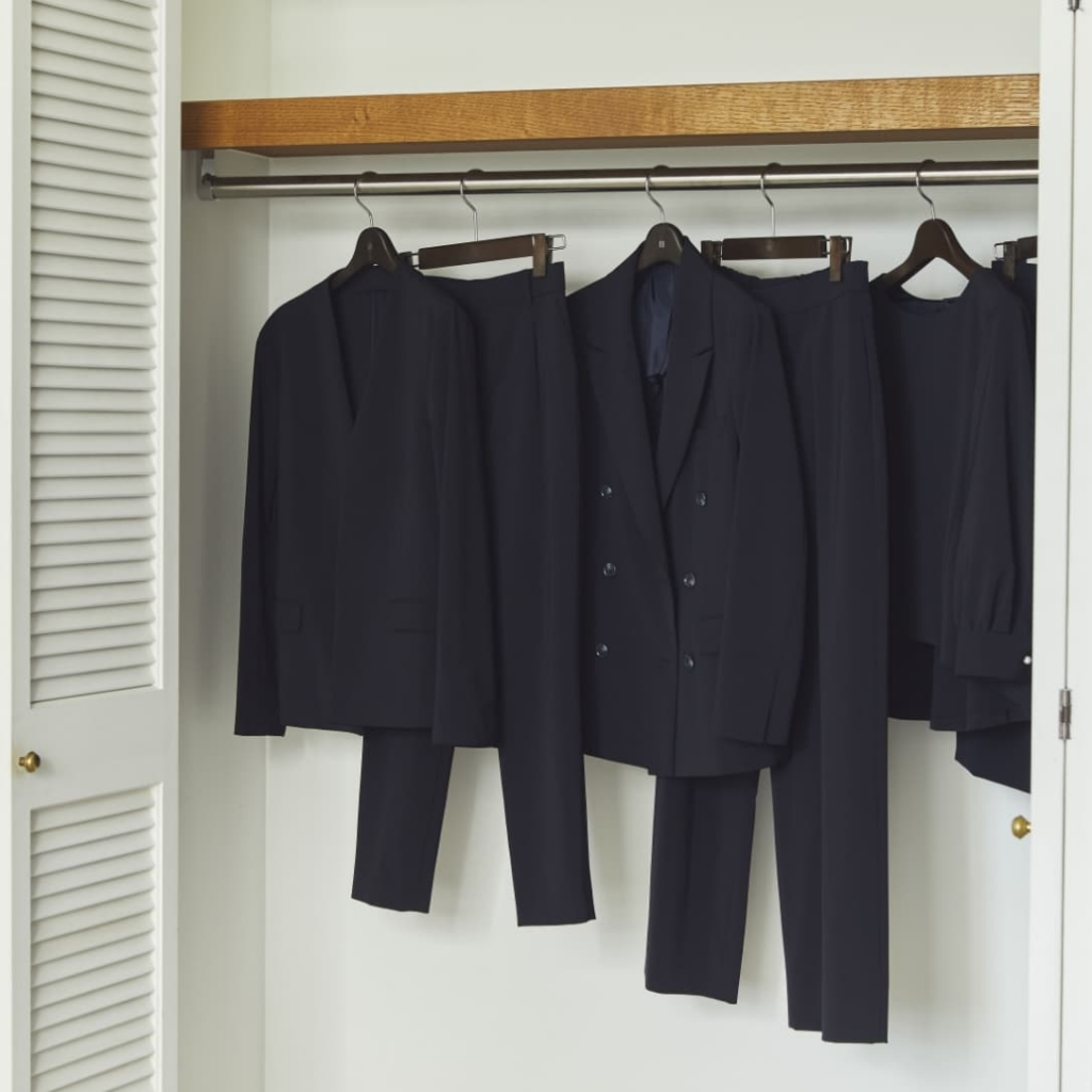 - きちんと感のあるシンプルなスーツスタイルが王道