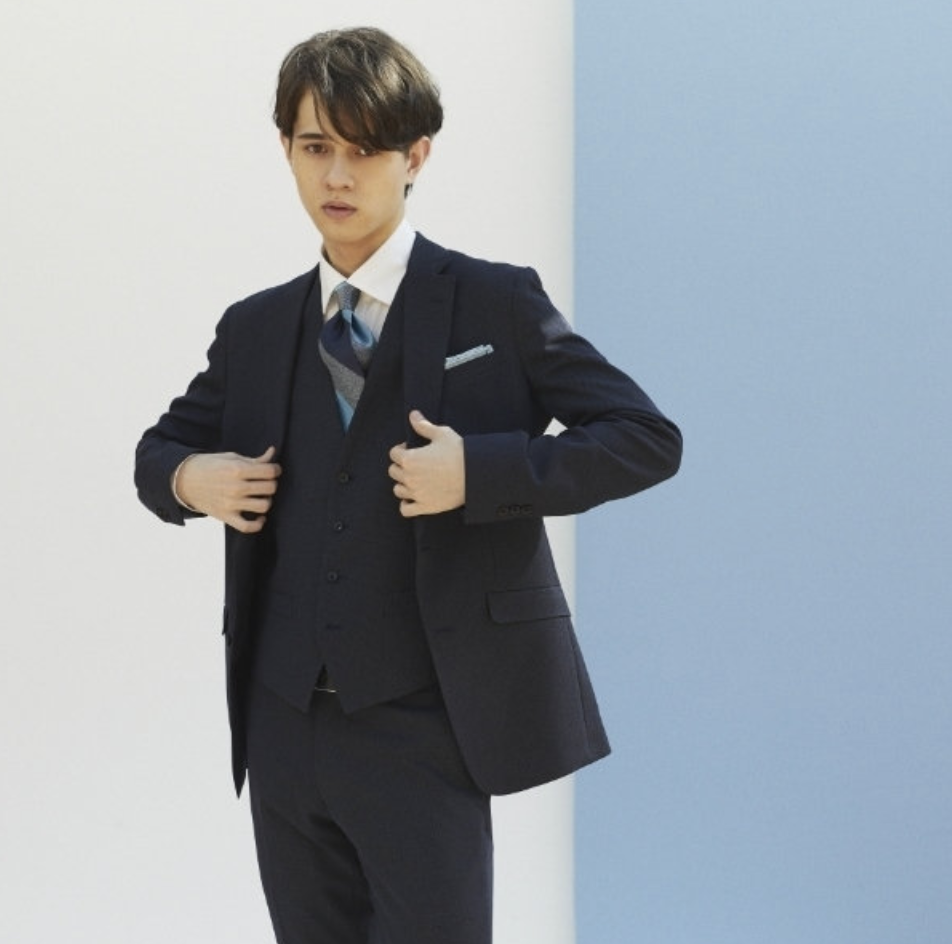 ビジネススーツに使われる生地は、シワに強い、通気性が高い、ストレッチ性があるなど機能面に特化した素材で仕立てられてるものも多いです。光が当たるとその反射によって白っぽく見えたり、グレーがかったように見えてしまうことがあります。
