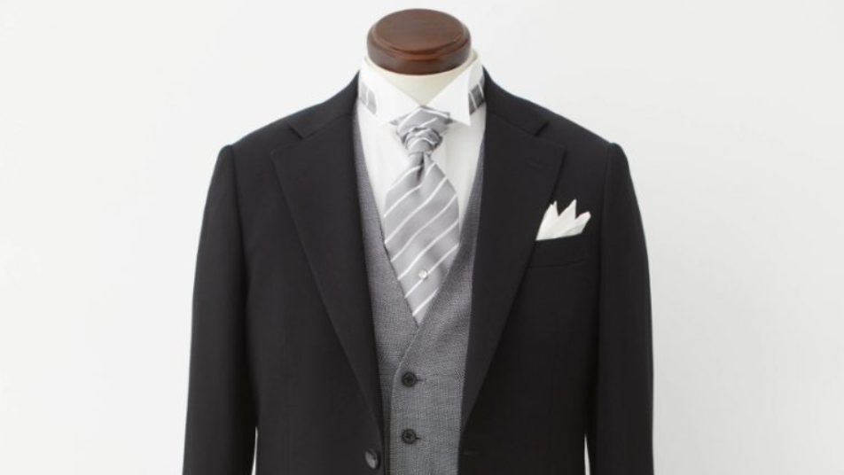 見慣れた普段のスーツでも、お祝いのカラーであるシルバーグレーの無地のベストを着用するだけで、ドレスアップした印象になります。特にビジネススーツで出席する場合、ベストだけでも新調するのがおすすめです。