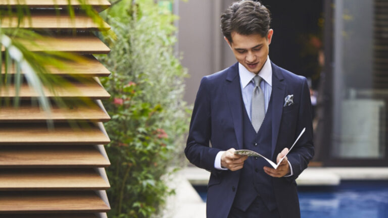 フォーマルスーツを持っていない場合でも、手持ちのビジネススーツを工夫して結婚式にふさわしい装いに仕上げることは可能です。ポイントは、「落ち着いたカラー」「上質な素材感」「スリーピーススタイル」「小物使い」の4つ。