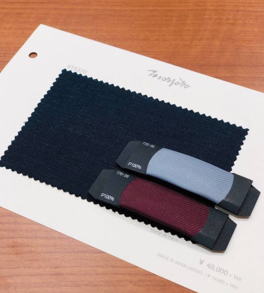 ただしサンプル(ゲージ服)を試着するといったことがないため、オーダー初心者には仕上がりのイメージがややつきにくいかもしれません。作成途中で「仮縫い」されたスーツを着用しサイズ感やシルエットを確認することができますが、その分来店の手間はかかります。