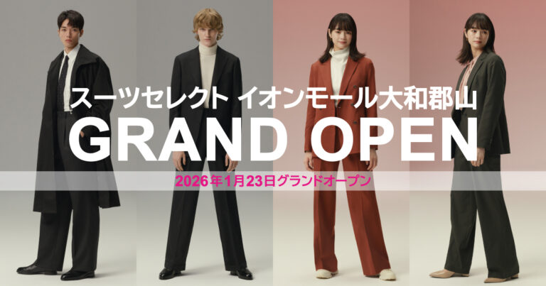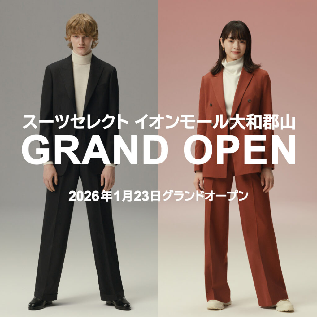 2026年1月23日㈮にオープンする、『スーツセレクトイオンモール大和郡山』のグランドオープンセール情報をお伝えさせていただきました。
